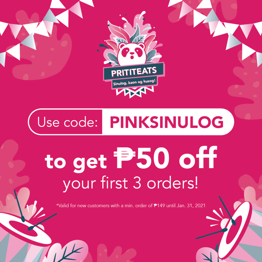 Over a hundred restaurants and food establishments are joining the celebration that will allow us to enjoy our go-to food orders at a discount of 20% and up. New foodpanda users may use the code “PINKSINULOG” to get P50 off on their first three orders with a minimum order value of P149. Promo runs until January 31, 2021.