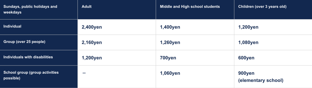 - Children 3-11 years old ~1,200yen