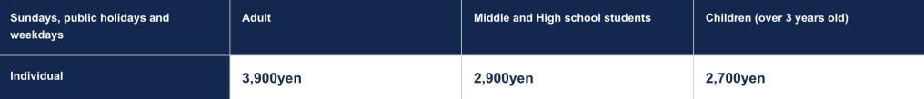 - Children 3-11 years old ~2,700yen